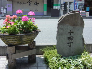 (写真は中央通りの道標。善光寺の門前町長野にはところどころに句碑もある。「春風や牛に引かれて善光寺」中央通り新田町には小林一茶の句が書かれている。)